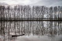 Halb versunkenes Boot bei Hochwasser in den Auen der Maas.
