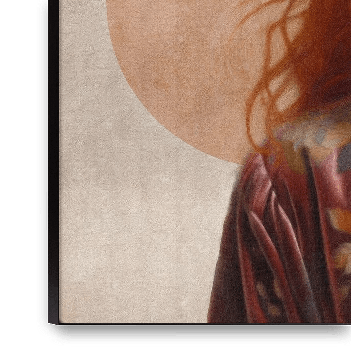 Ihre gewählte Kunst auf Leinwand, gespannt in einem Aluminiumrahmen. Schnell und einfach austauschbar für eine frische Ausstrahlung und ganz nach Ihren Wünschen.