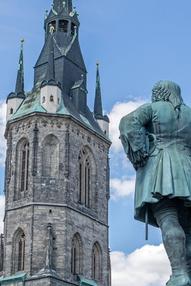 Der Rote Turm ist Teil des Wahrzeichens der Stadt Halle (Saale) in Sachsen-Anhalt. Dieses bildet er gemeinsam mit den vier Türmen der Marktkirche Unser Lieben Frauen. Halle wird wegen der markanten Silhouette dieser beiden Bauten auch oft als Stadt der Fünf Türme bezeichnet. Der Turm brannte am 16. April 1945 durch Artilleriebeschuss aus und verlor seinen charakteristischen Turmhelm. Bis auf die Turmumbauung wurde er wiederhergestellt.