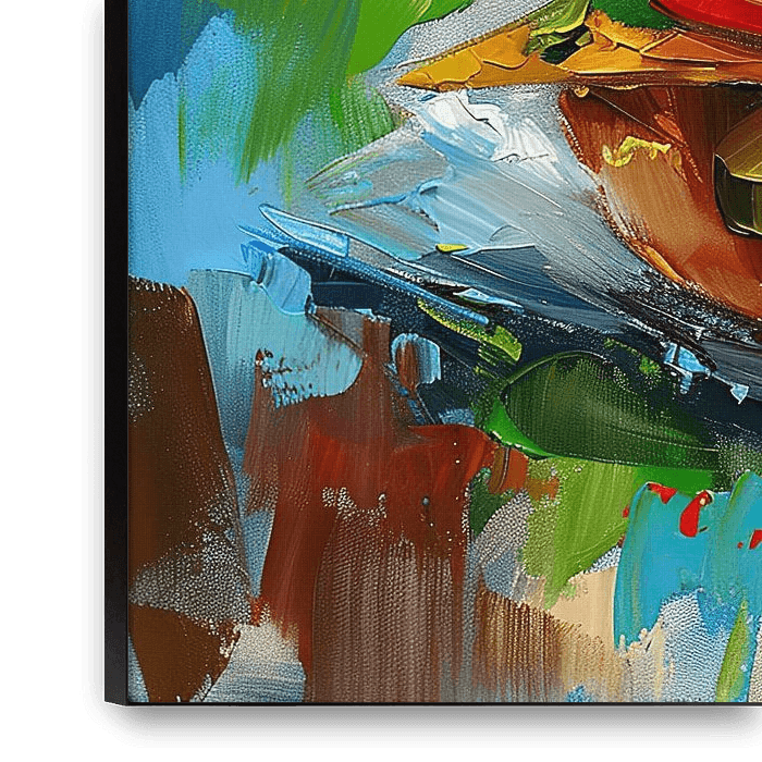 Ihre gewählte Kunst auf Leinwand, gespannt in einem Aluminiumrahmen. Schnell und einfach austauschbar für eine frische Ausstrahlung und ganz nach Ihren Wünschen.