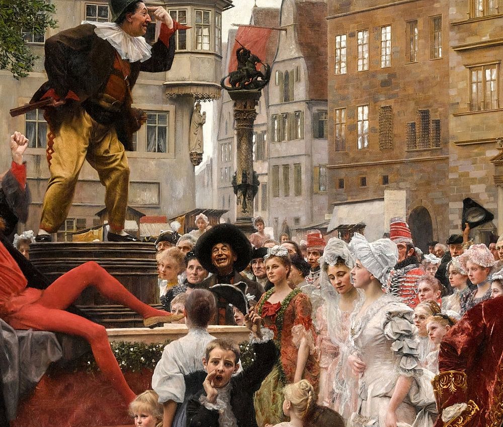Hanswurst bei einem Stegreifspiel in Rothenburg, Gustav Klimt und Ernst Klimt (1886)