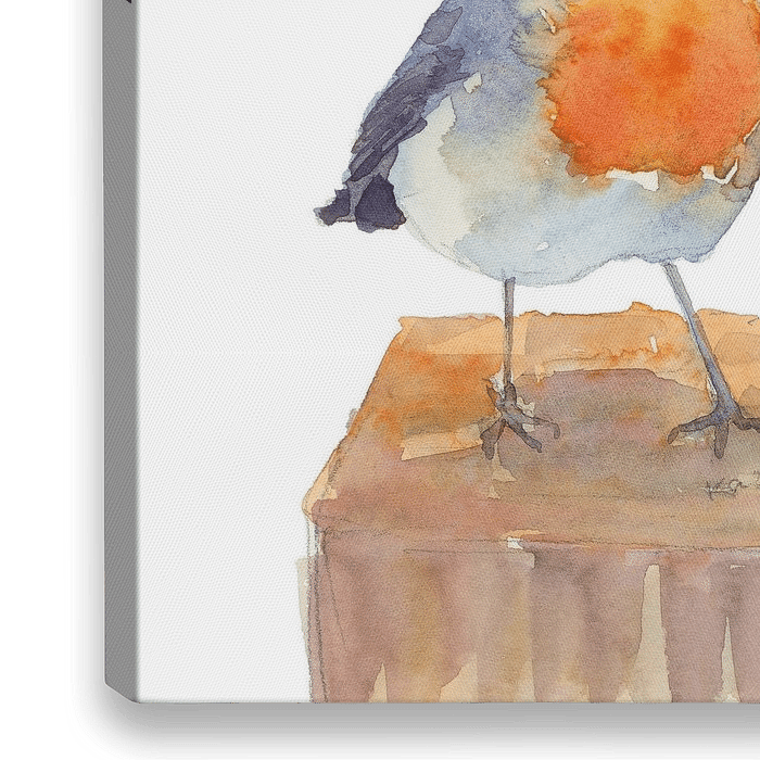 Bestelle dieses Vögel Wandbild Happy Birthday Rotkehlchen von Karen Kaspar als Reproduktion auf Leinwand, Alu-Dibond, als Poster, Fototapete, ArtFrame oder Acrylglasbild, maßgefertigt in höchster Qualität.