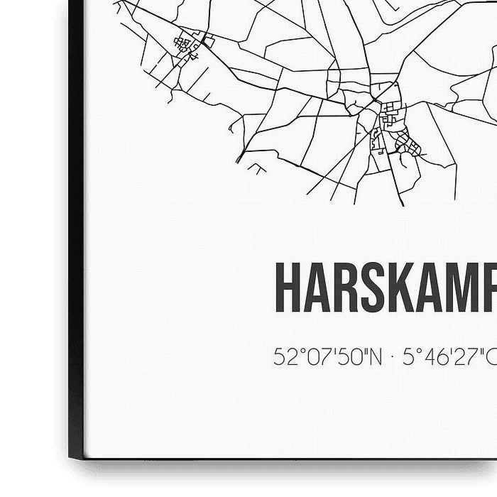 Bestelle dieses abstrakte Wandbild Harskamp (Gelderland) | Karte | Schwarz und Weiß von Ortsdrucke als Reproduktion auf Leinwand, Alu-Dibond, als Poster, Fototapete oder Acrylglasbild.