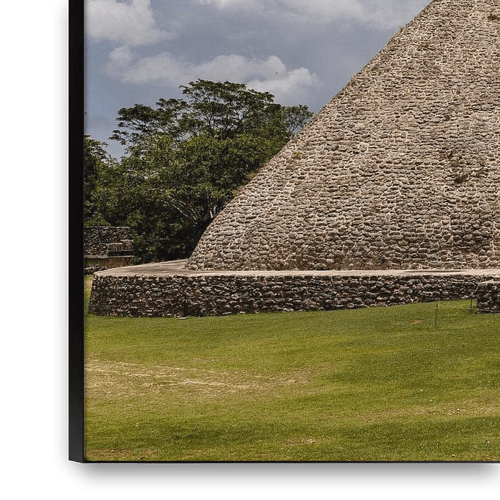 Dies ist der Haupttempel in der Maya-Stadt Uxmal. Die Stadt liegt in Yucatan, der Halbinsel Mexikos. Das Grün bildet ein schönes Gegengewicht zum Blau und der Himmel trägt mit den schönen Wolken viel dazu bei.