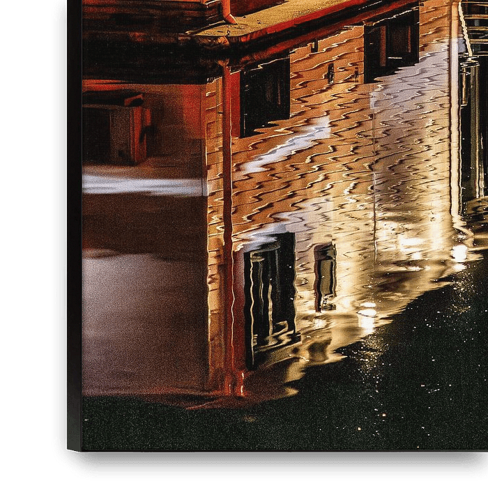 Bestelle das Foto Hausboot mit Beleuchtung und Spiegelung bei Nacht von Jan Willem de Groot Photography als Reproduktion auf Leinwand, Alu-Dibond, als Poster, Fototapete oder Acrylglasbild.