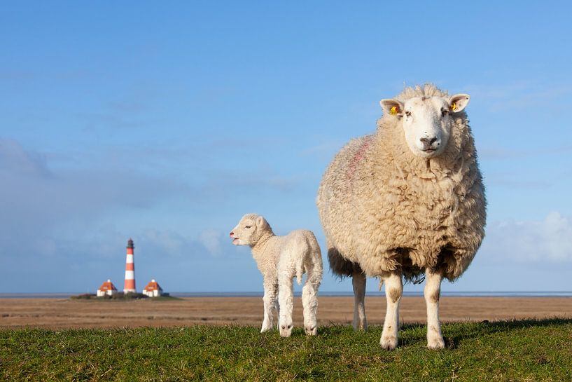 Hausschaf, Ovis orientalis aries, Mutterschaf mit Lamm, Schleswig-Holstein, Deutschland