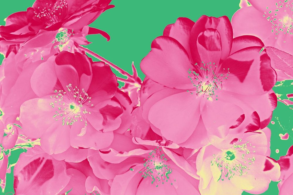 Bestelle dieses Blumen-Wandbild Heckenrosen Pop-Art von Karsten Jordan als Reproduktion auf Leinwand, Alu-Dibond, als Poster, Fototapete oder Acrylglasbild.