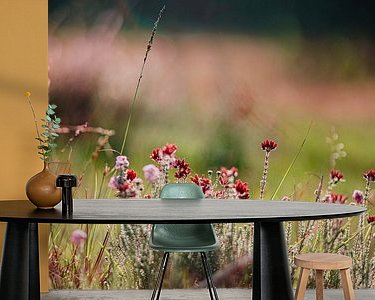 Eine Nahaufnahme von Blumen auf der Heide in Limburg. Im Sommer bei Sonnenuntergang hergestellt