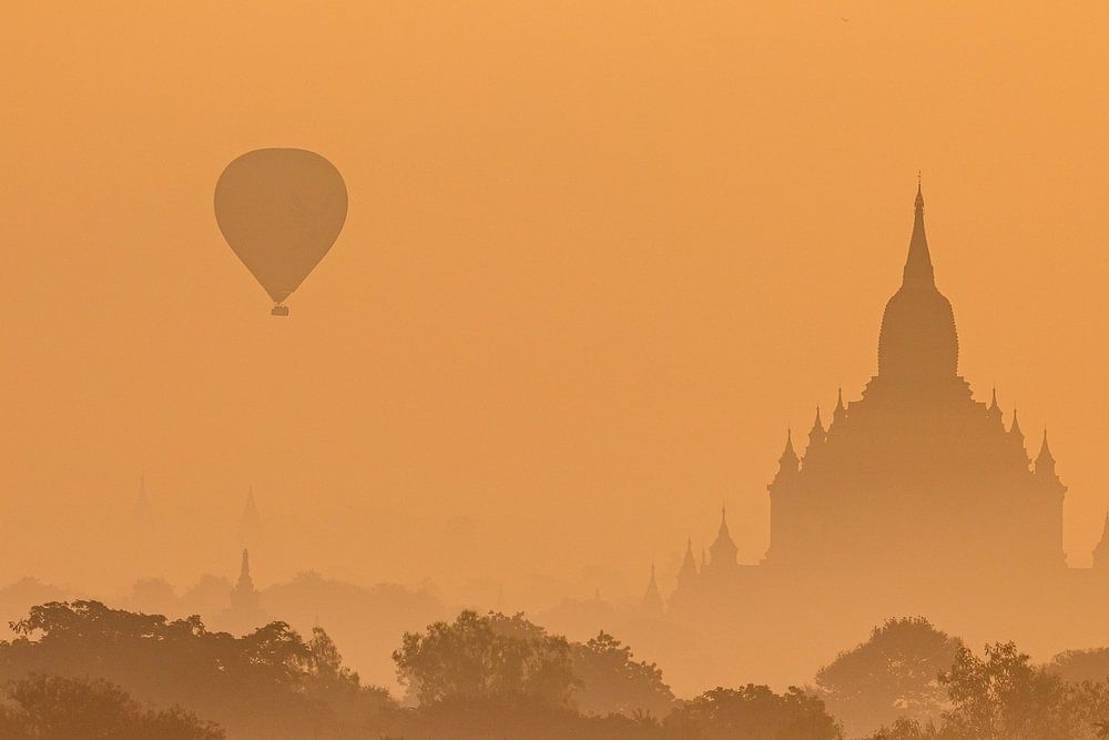 Heißluftballons über Bagan in Myanmar