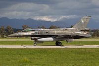 Hellenic Air Force F-16 Fighting Falcon rollt während der Übung Iniochos 2018 zum Abflug aus.
