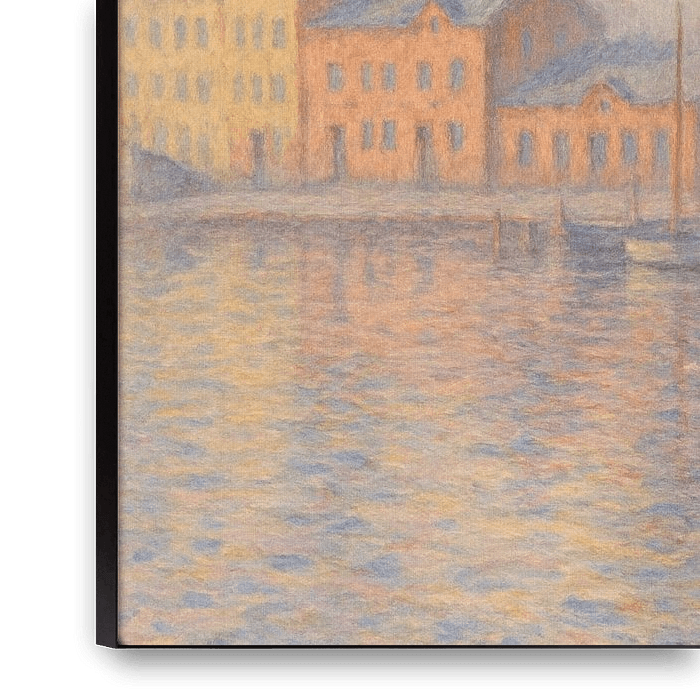 Ihre gewählte Kunst auf Leinwand, gespannt in einem Aluminiumrahmen. Schnell und einfach austauschbar für eine frische Ausstrahlung und ganz nach Ihren Wünschen.