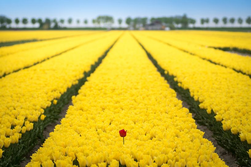 Sticking out erzählt die Geschichte dieser einen roten Tulpe in einem Meer aus gelben Tulpen. Trauen Sie sich, mit diesem wunderschönen farbenfrohen Werk an Ihrer Wand aufzufallen und holen Sie sich den Frühling ins Haus.