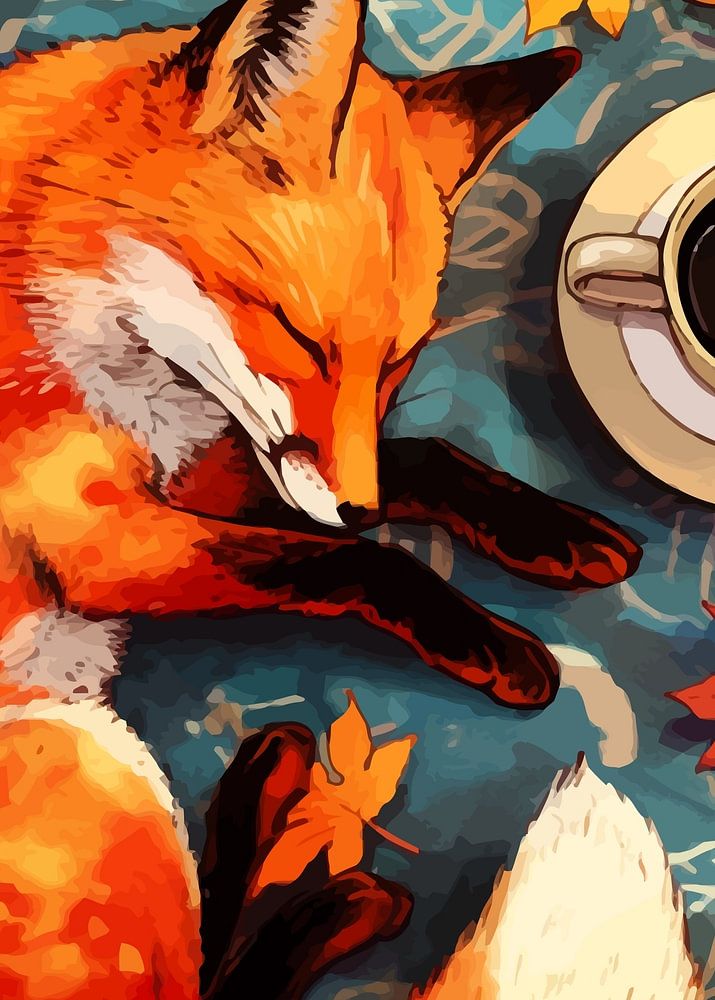 Bestelle das digitale Kunst Bild Herbst Rotfuchs schlafend von MIROKKU als Reproduktion auf Leinwand, Alu-Dibond, als Poster, Fototapete oder Acrylglasbild.