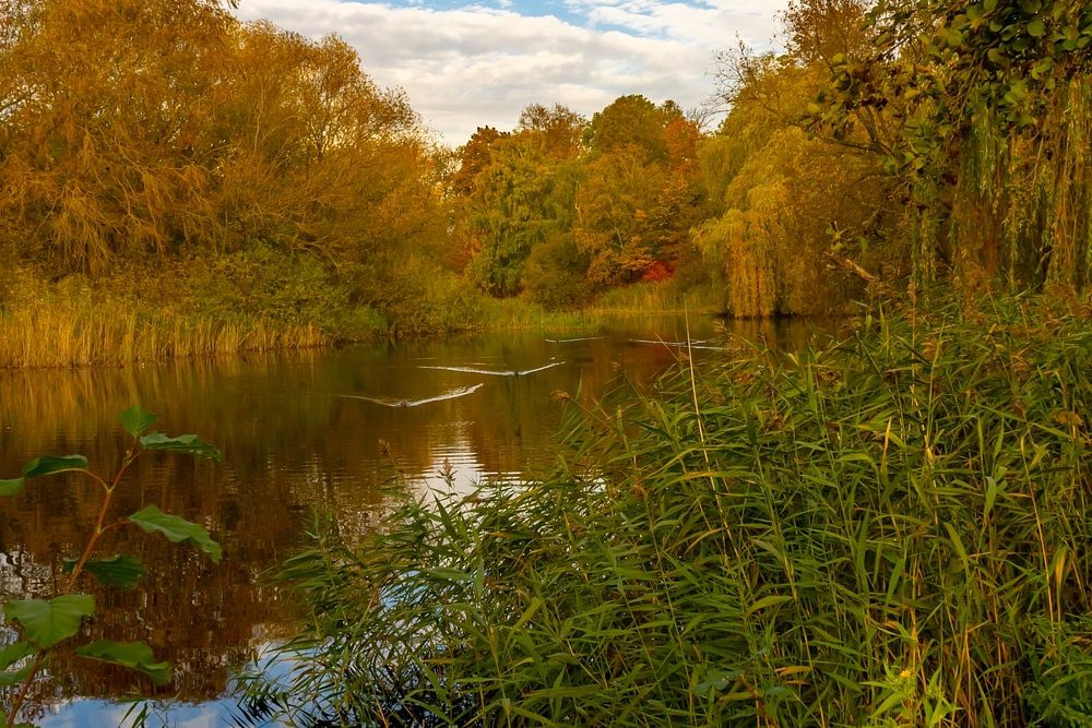 Der kleine See vor meiner Haustür im Herbstkleid. In wenigen tagen werden die Laubbäume und Büsche ihr Farbspiel beenden. Dann kehrt am See der Winter ein.