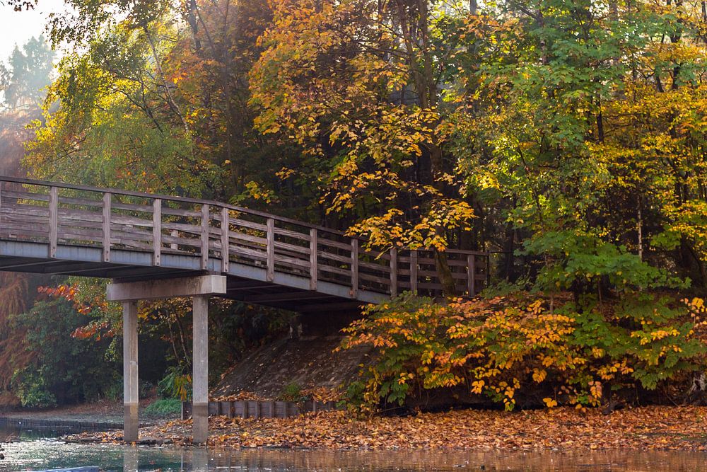 Die Wandelbos in Tilburg (Brabant) sind ein Ort, den ich gerne besuche. Besonders im Herbst. Die Bäume werden gelb und orange und die Gänse scheinen im Wasser zu schwimmen. Die Brücke über das Wasser sorgt für zusätzliche Tiefe im Bild.