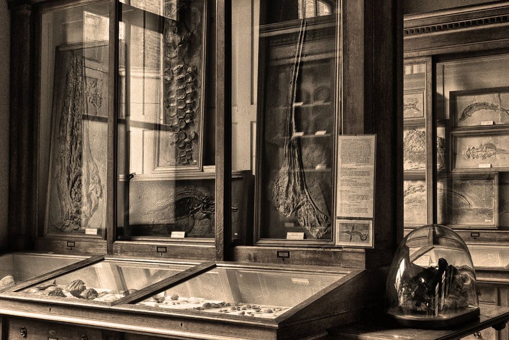 Vitrinekasten in het oudste museum van Nederland, het Teylers museum