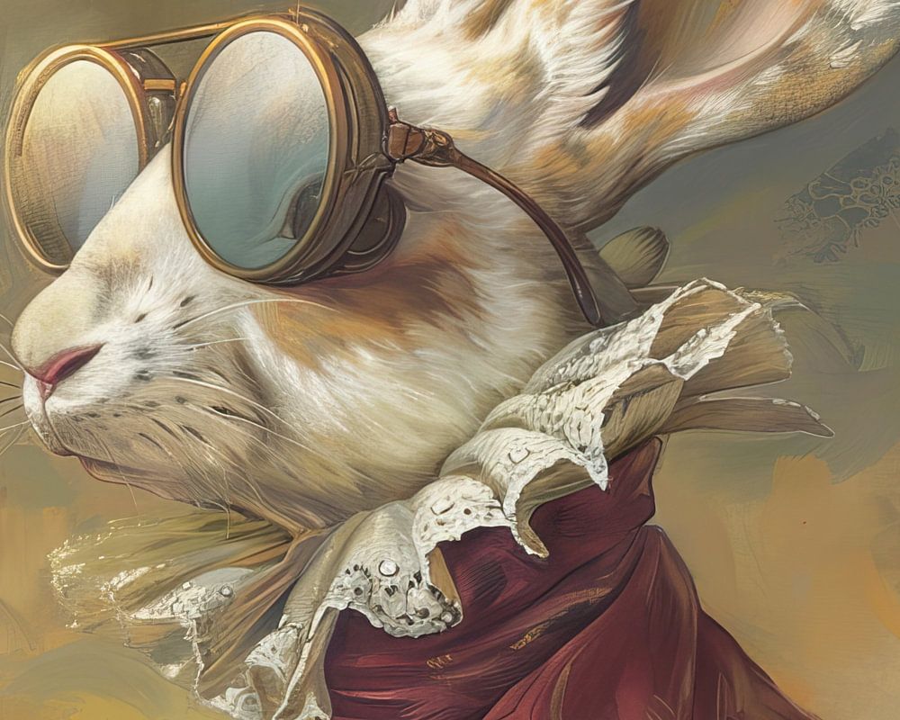 Details: Kaninchen, Vintage, Portrait, humorvoll, Brille, braun, beige, weiß, Kleidung