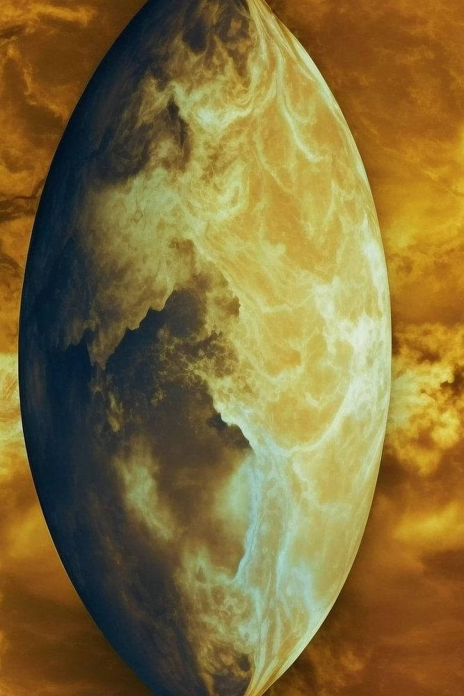 Himmlisches Gleichgewicht präsentiert ein fesselndes symmetrisches Design mit zwei strahlenden, goldenen Planetenhälften, die in wirbelnde Wolken gehüllt sind. Diese leuchtenden Formen sind durch eine dunklere zentrale Kugel verbunden, die mit verschlungenen, fließenden Mustern verziert ist. Das Zusammenspiel von Licht und Schatten sowie die harmonische Mischung von Texturen und Formen erwecken ein Gefühl von kosmischer Dualität und Einheit - perfekt für Sammler von weltrauminspirierter oder abstrakter Himmelskunst.