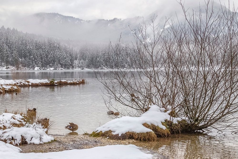 lake named Hintersee in Bavaria at winter time