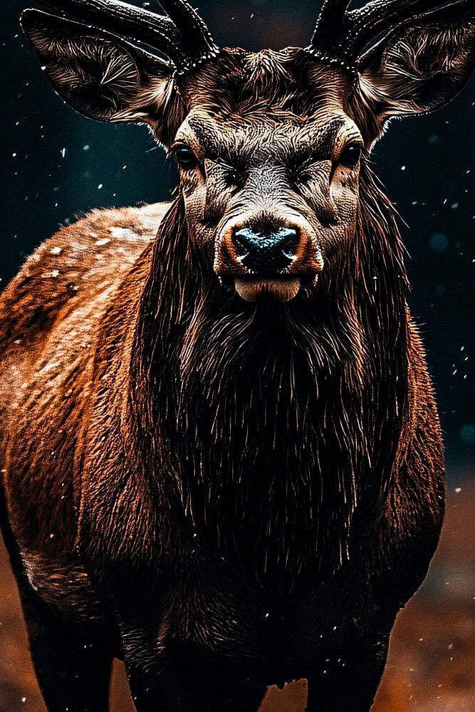 Ein schöner und majestätischer Hirsch steht stolz in einer nebligen Waldlandschaft, umgeben von leichtem Schneefall, der die Atmosphäre der Wintersaison unterstreicht. Die reichhaltigen Details im Design zeigen die Textur des Fells und die beeindruckende Form des Geweihs. Dieses Bild strahlt Kraft, Gelassenheit und natürliche Schönheit aus und ist eine perfekte Ergänzung für jeden Raum, in dem eine Verbindung zur Natur gewünscht wird. Dieses Stück fängt einen Moment reiner Ruhe und Bewunderung in einer einzigartigen Umgebung ein.