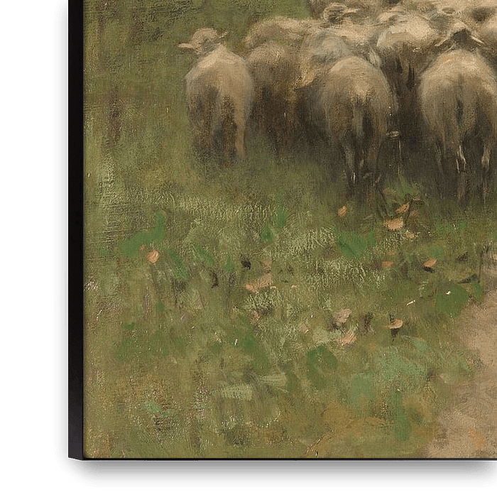 Bestelle Hirtin mit Schafherde, Anton Mauve als Reproduktion auf Leinwand, Alu-Dibond, als Poster, Fototapete oder Acrylglasbild.