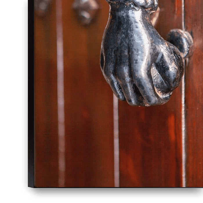 Bestelle das Foto Historischer Türknauf in der Altstadt von Ibiza-Stadt von t.ART als Reproduktion auf Leinwand, Alu-Dibond, als Poster, Fototapete oder Acrylglasbild.