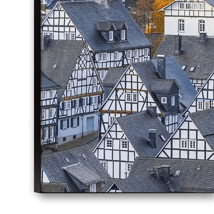 Bestelle das Foto Historisches Freudenberg im Herbst von Henk Meijer Photography als Reproduktion auf Leinwand, Alu-Dibond, als Poster, Fototapete oder Acrylglasbild.