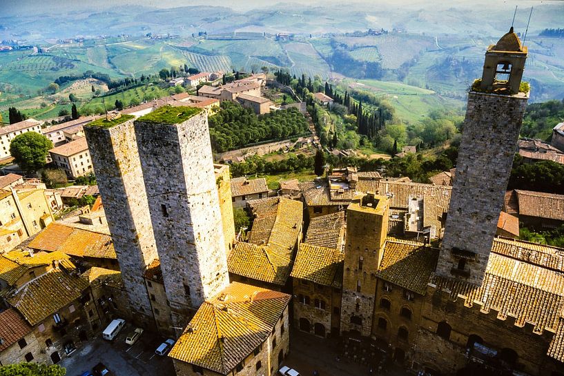 Hochhäuser in San Gimignano Toskana Italien von oben Luftaufnahme