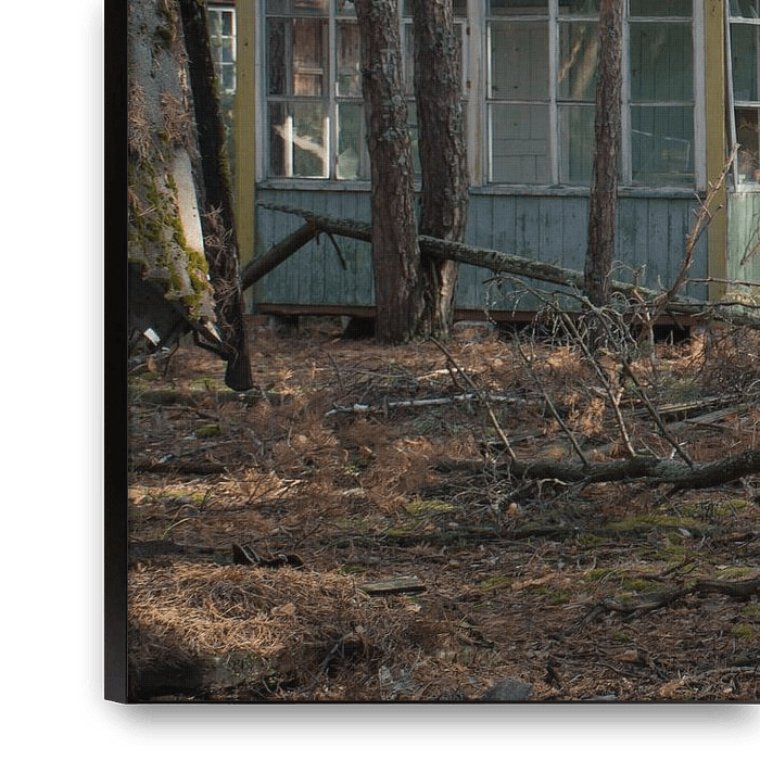 Diese Holzhäuser stehen auf dem Gelände eines verlassenen Kinderlagers in der Tschernobyl-Zone. Das ist ein außergewöhnlicher Anblick. Leider wurde es 2020 durch Waldbrände weitgehend niedergebrannt.