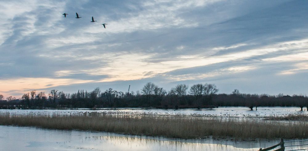 Deze foto is genomen tijdens het hoge water bij Avelingen. Dit is het overstroom gebied van de Waal.