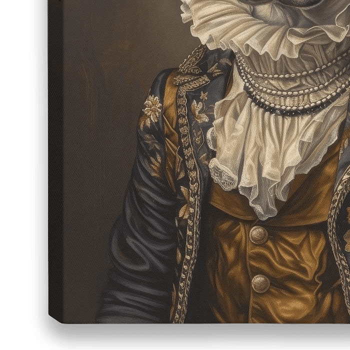 Bestelle dieses Blumen-Wandbild Hund in viktorianischem Kleid von Gelissen Artworks als Reproduktion auf Leinwand, Alu-Dibond, als Poster, Fototapete oder Acrylglasbild.