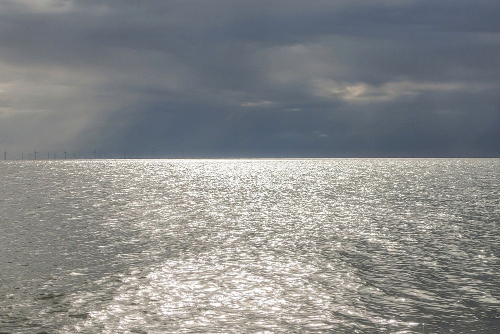 Die Sonne scheint durch die dunklen Wolken auf das IJsselmeer.