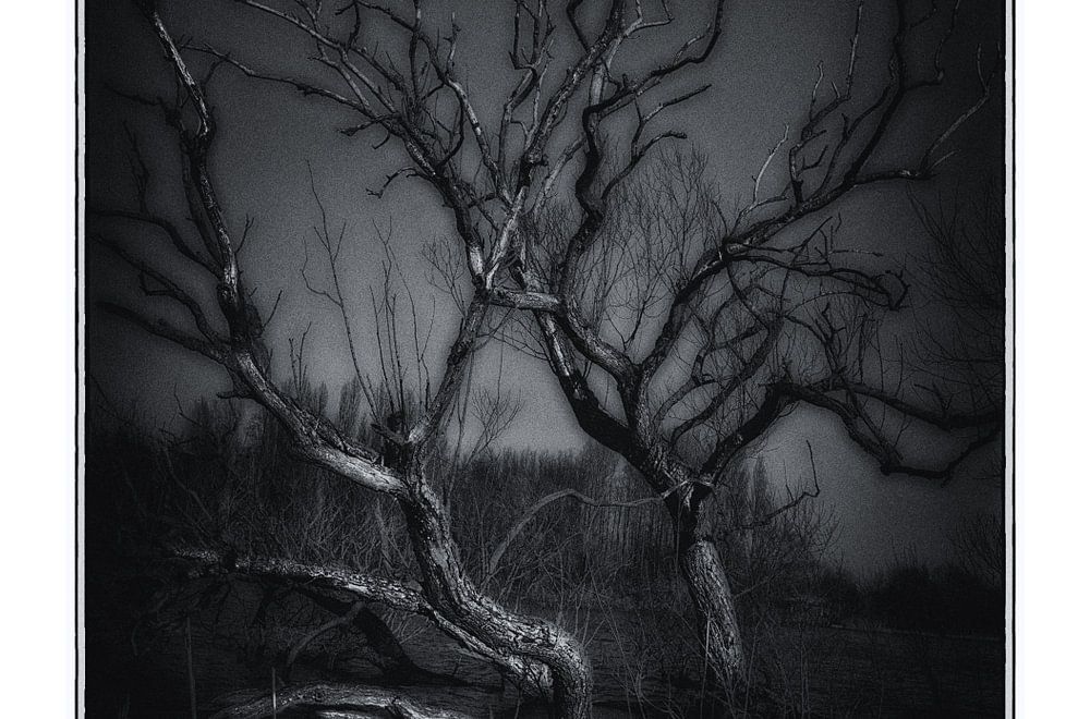 toter Baum am Ufer eines Flusses. geheimnisvoll