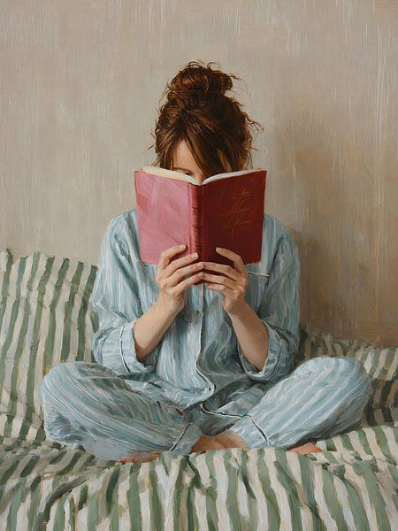 Bestelle diese Malerei In Pyjamas ein Buch lesen von IamHome Studio als Kunstdruck auf Leinwand, Alu-Dibond, als Poster, Fototapete oder Acrylglasbild.