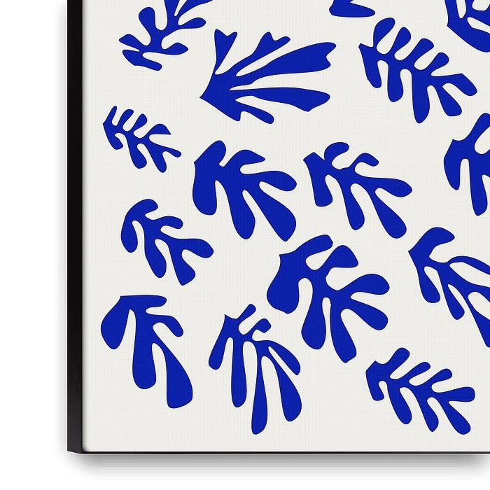 Inspiriert von Henri Matisse darf ich Ihnen hier eine wundervolle Natur Blatt Malerei mit blauen Blatt Formen auf hell beigefarbenem Hintergrund vorstellen.