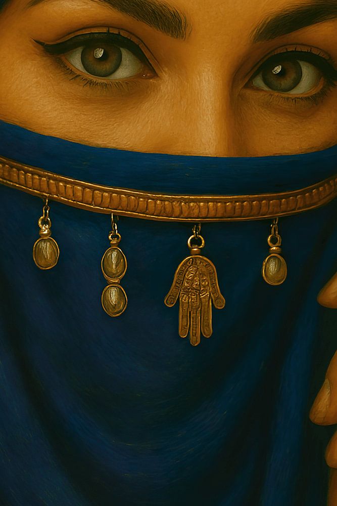 Kunst. Dame. Portrait. Frau. Muslimin. Kultur. Schleier. Goldschmuck. Wall Art. Wandkunst. Deko Wandbild.