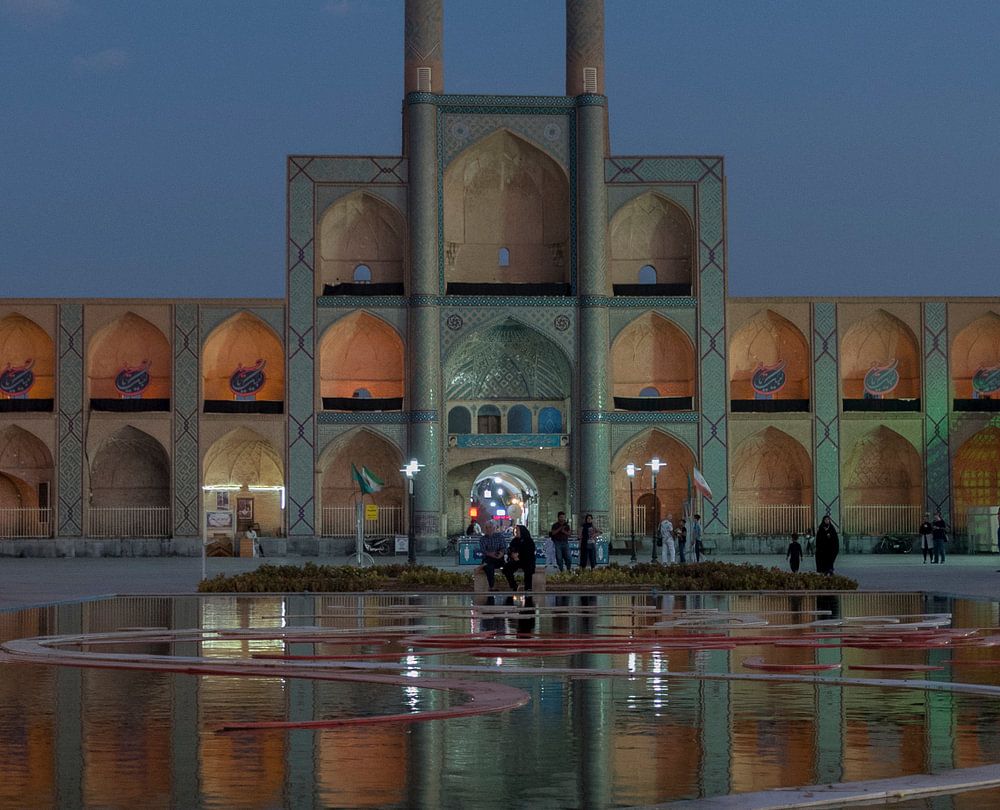 Der Amir Chakhmaq-Komplex ist ein markantes Bauwerk in Yazd, das für seinen symmetrischen, vertieften Alk bekannt ist. Es ist eine Moschee auf dem gleichnamigen Platz. Es enthält auch eine Karawanserei, eine Tekyeh, ein Badehaus, eine Kaltwasserquelle und eine Konditorei. Nachts wird das Gebäude in der Dämmerung nach Sonnenuntergang mit orangefarbenem Licht in den gewölbten Nischen beleuchtet, wodurch es zu einem Spektakel wird. Während des Krieges zwischen Iran und Irak und der Kriege im Irak mit den Vereinigten Staaten und Afghanistan kamen viele Iraker und Afghanen auf den Amir Chakhmaq-Platz.