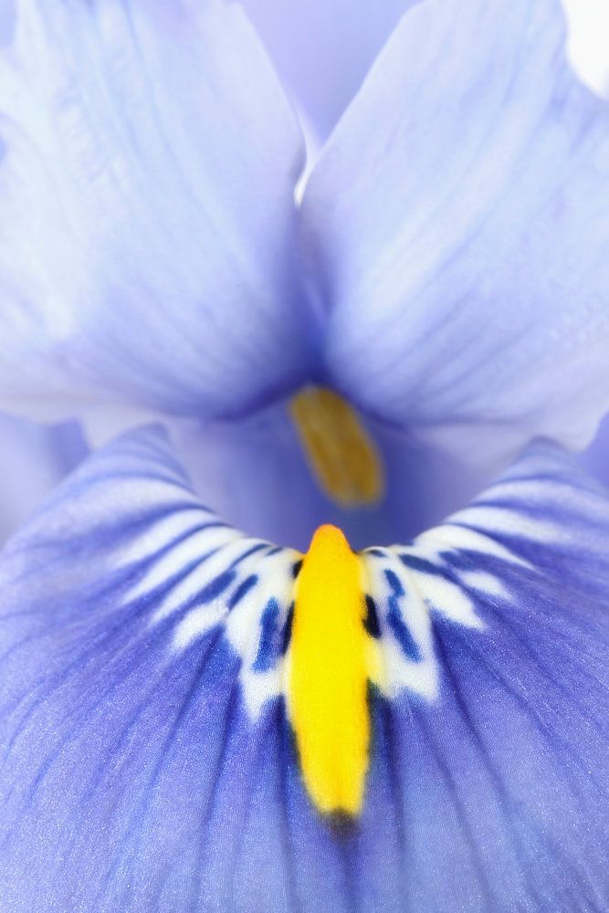 Eine schöne Iris vor weißem Hintergrund. Diese fröhlichen Blumen verschönern im Frühling so manchen Garten.