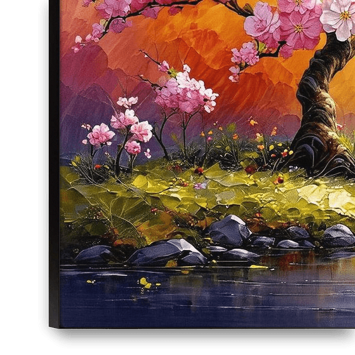 Bestelle dieses Landschafts-Wandbild Japanische Kirschbäume von AidasignArt als Reproduktion auf Leinwand, Alu-Dibond, als Poster, Fototapete oder Acrylglasbild.