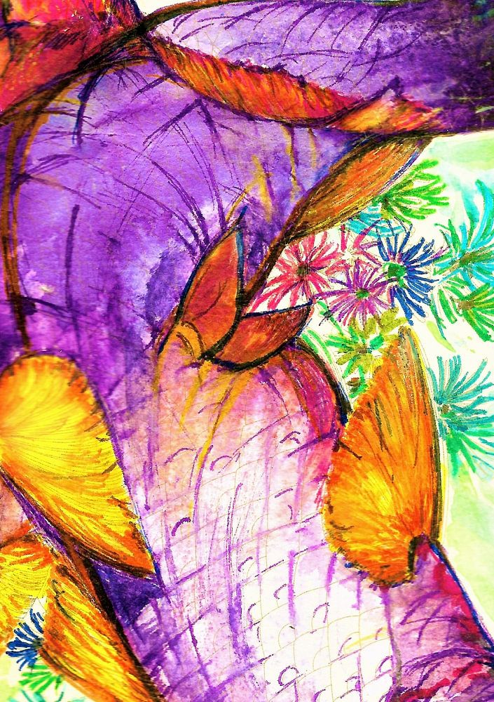 Blumen pflücken an einem schönen Sommertag. PastellzeichnungIneke de Rijk Vogel 2Ineke de Rijk