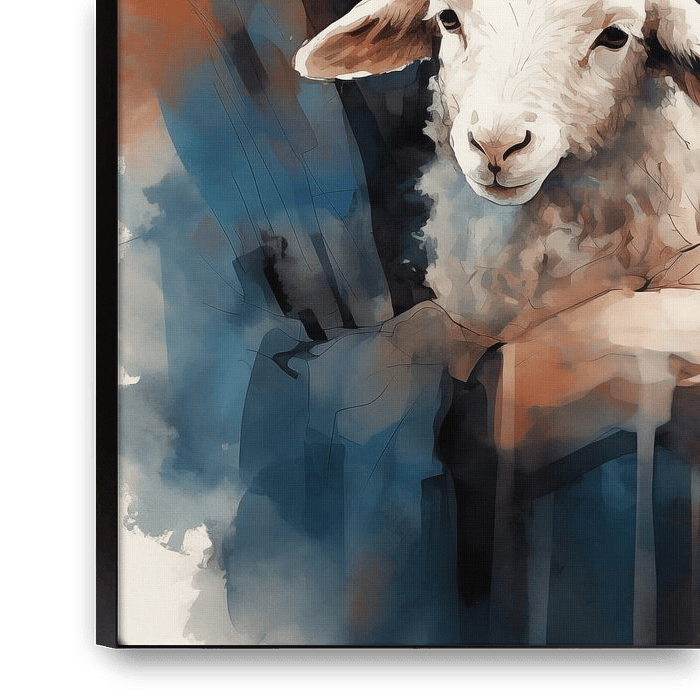 Bestelle dieses abstrakte Wandbild Jesus mit Lamm von NJ Midnight Studio als Reproduktion auf Leinwand, Alu-Dibond, als Poster, Fototapete oder Acrylglasbild.