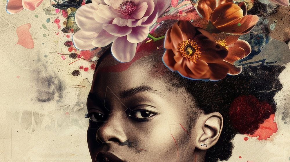 Lassen Sie sich von der Harmonie von Kultur und Kreativität mit dieser faszinierenden abstrakten Kunstcollage verzaubern. Eine junge afrikanische Frau, gekrönt von einem üppigen Blumenkranz, steht im Mittelpunkt dieses Meisterwerks. Durchdrungen von der Essenz der konzeptionellen Modekunst und in einem modernen Stil präsentiert, spiegelt dieses Kunstwerk die zeitlose Schönheit und Stärke der afrikanischen Frau wider. Bereichern Sie Ihren Raum mit dieser inspirierenden Kreation und lassen Sie sich auf eine Reise der Ästhetik und Fantasie mitnehmen.