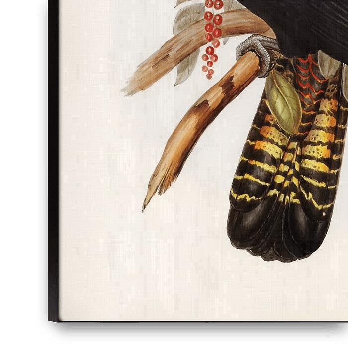 Nostalgische Illustration von zwei Kakadus vor einem ruhigen, neutralen Hintergrund. Dieses Kunstwerk mit Vogel passt eigentlich zu jedem Wohnstil. Es lässt sich auch gut mit anderen Kunstwerken kombinieren.