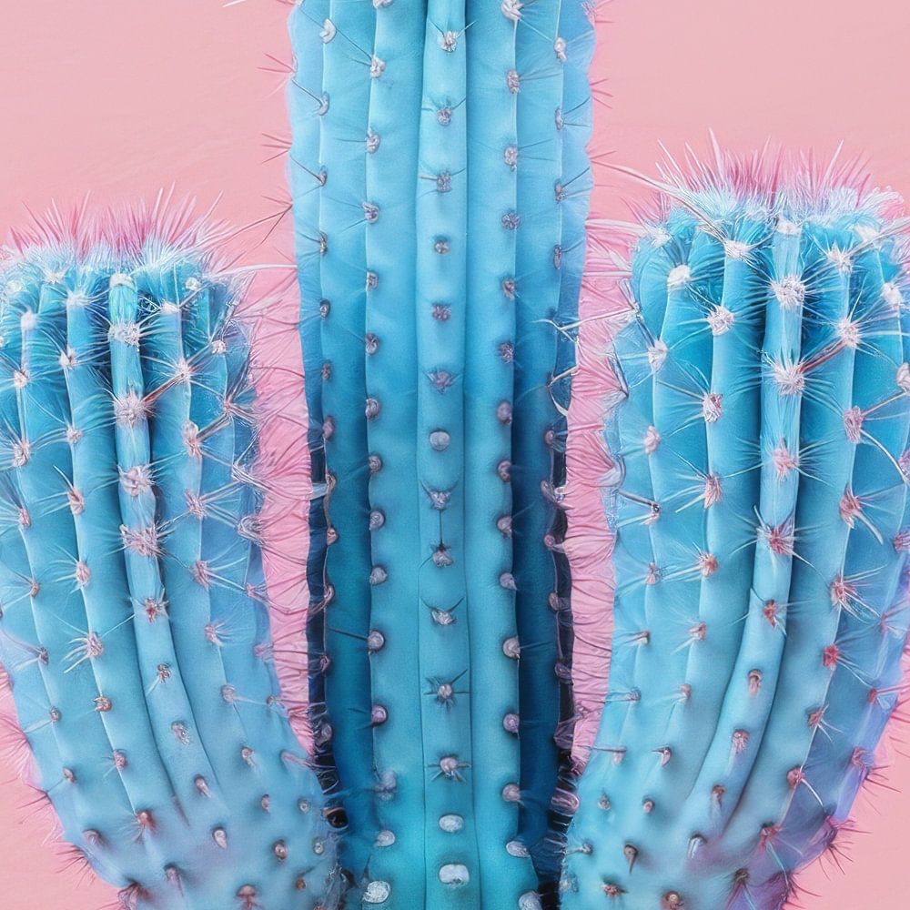 Tauche ein in die Welt der modernen Pflanzenkunst mit diesem auffälligen Bild eines blauen Kaktus vor einem sanften rosa Hintergrund. Perfekt für stylische Wohnzimmer, trendige Cafés oder kreative Arbeitsräume, verleiht diese Darstellung jedem Raum einen Hauch von Exzentrik und Eleganz. Die kontrastreichen Farben und die ungewöhnliche Darstellung des Kaktus machen dieses Kunstwerk zu einem echten Hingucker und einer Quelle der Inspiration.