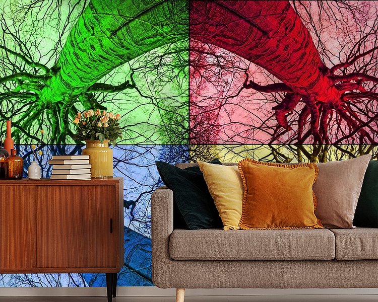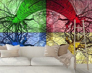 Dieser Baum ist kaleidoskopisch in verschiedenen Farben gespiegelt