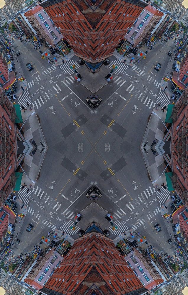 Die Kaleidosquare-Fotografie basiert auf dem Effekt eines Kaleidoskops. Bei der Aufnahme besteht die Herausforderung darin, die Aufnahme so perfekt wie möglich zu gestalten und dabei das endgültige kaleidoskopische Bild im Auge zu behalten. Nach der Aufnahme wird ein einzelnes Bild mehrmals zusammengefügt, um eine surreale symmetrische Komposition zu schaffen.
