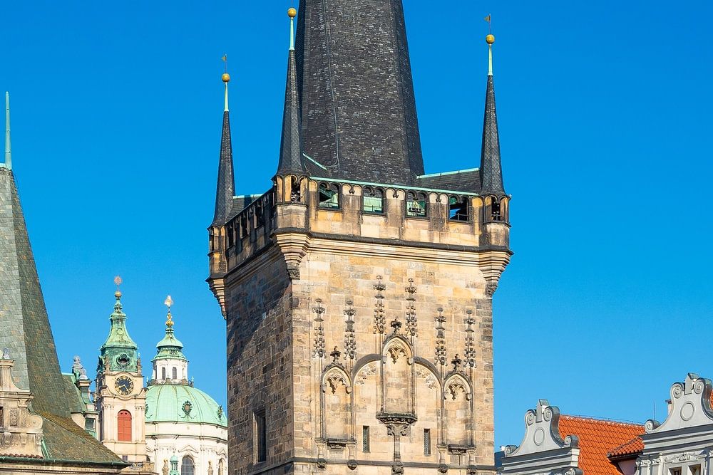 Türme an der Karlsbrücke in Prag an einem Tag im Frühling