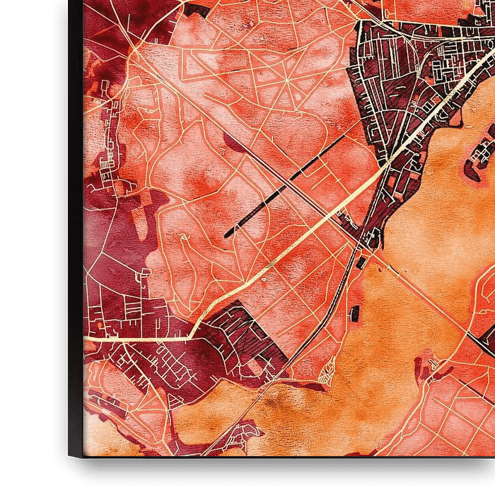 Bestelle dieses abstrakte Wandbild Karte von Potsdam im stil 'Amber Autumn' von Maporia als Reproduktion auf Leinwand, Alu-Dibond, als Poster, Fototapete oder Acrylglasbild.