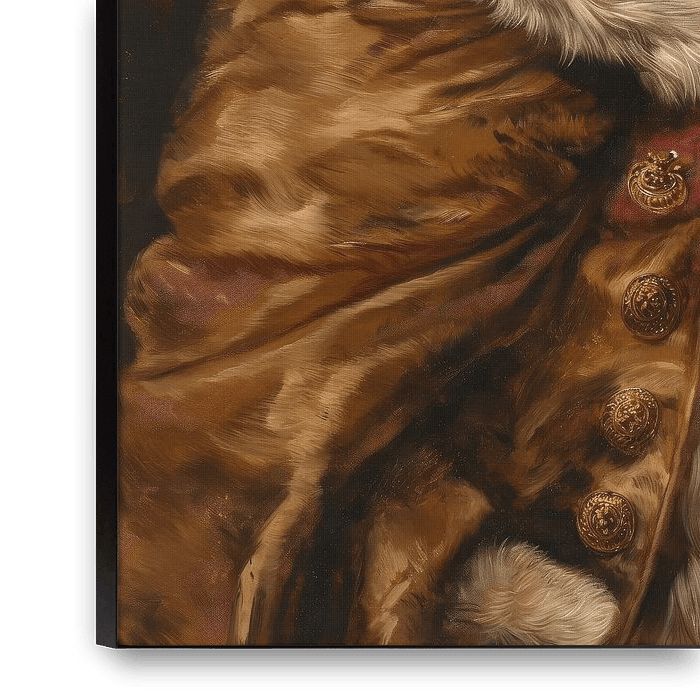 Bestelle dieses Porträt Katze in mittelalterlicher Kleidung von Imagine als Reproduktion auf Leinwand, Alu-Dibond, als Poster, Fototapete oder Acrylglasbild.
