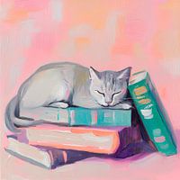 Bestelle dieses Stilleben Katze schläft auf Büchern von Poster Art Shop als Reproduktion auf Leinwand, Alu-Dibond, als Poster, Fototapete oder Acrylglasbild.